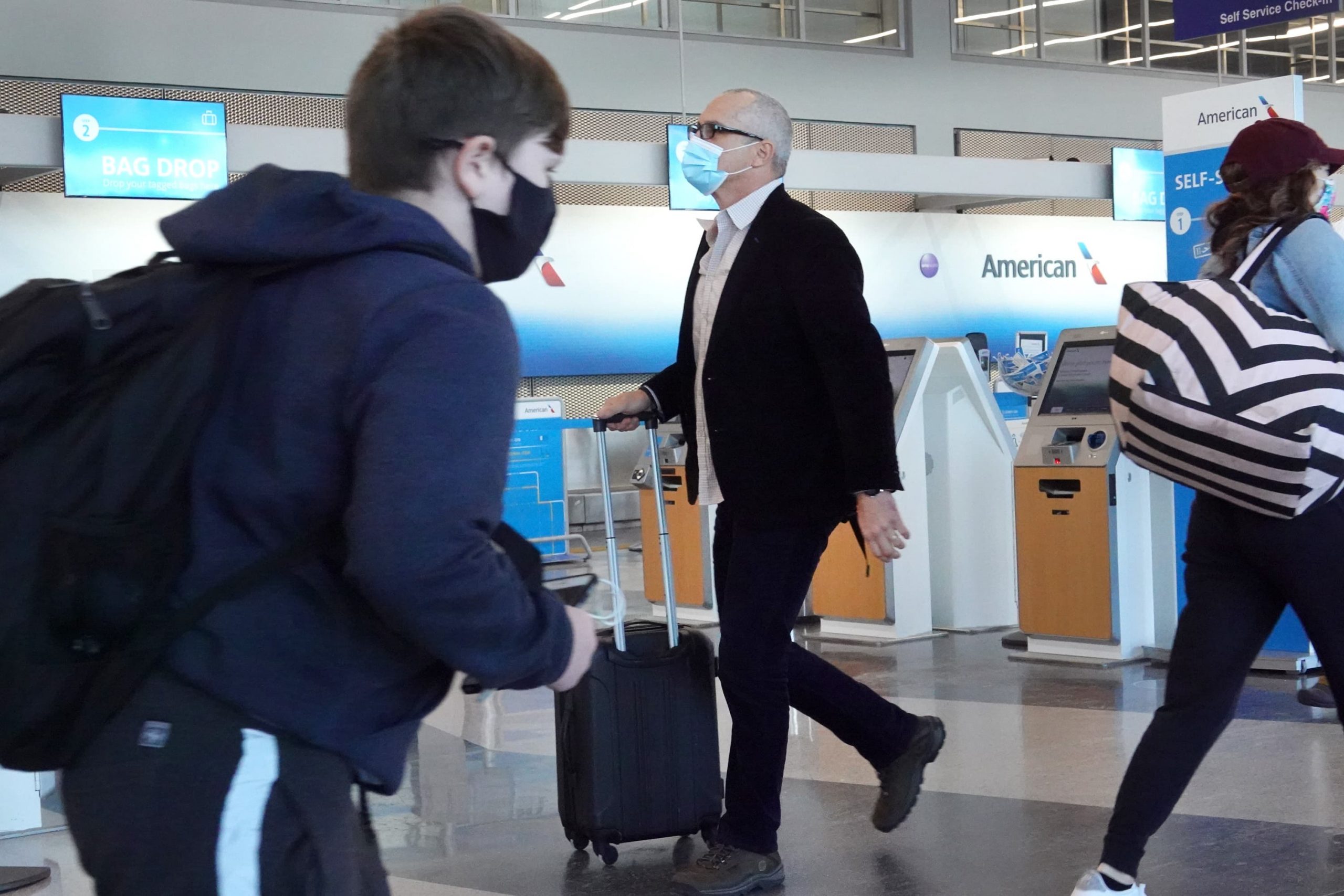 Passengers arrive for American Airlines flights at O’Hare International Airport in Chicago, Illinois on February 05, 2021.