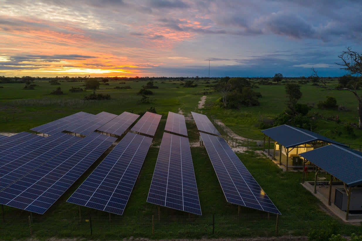 A 400-kilowatt Tesla solar power plant supplies 95% of the energy in the Xigera Safari Lodge, a hotel of the Red Carnation Hotel Collection in the Okavango Delta in Botswana.