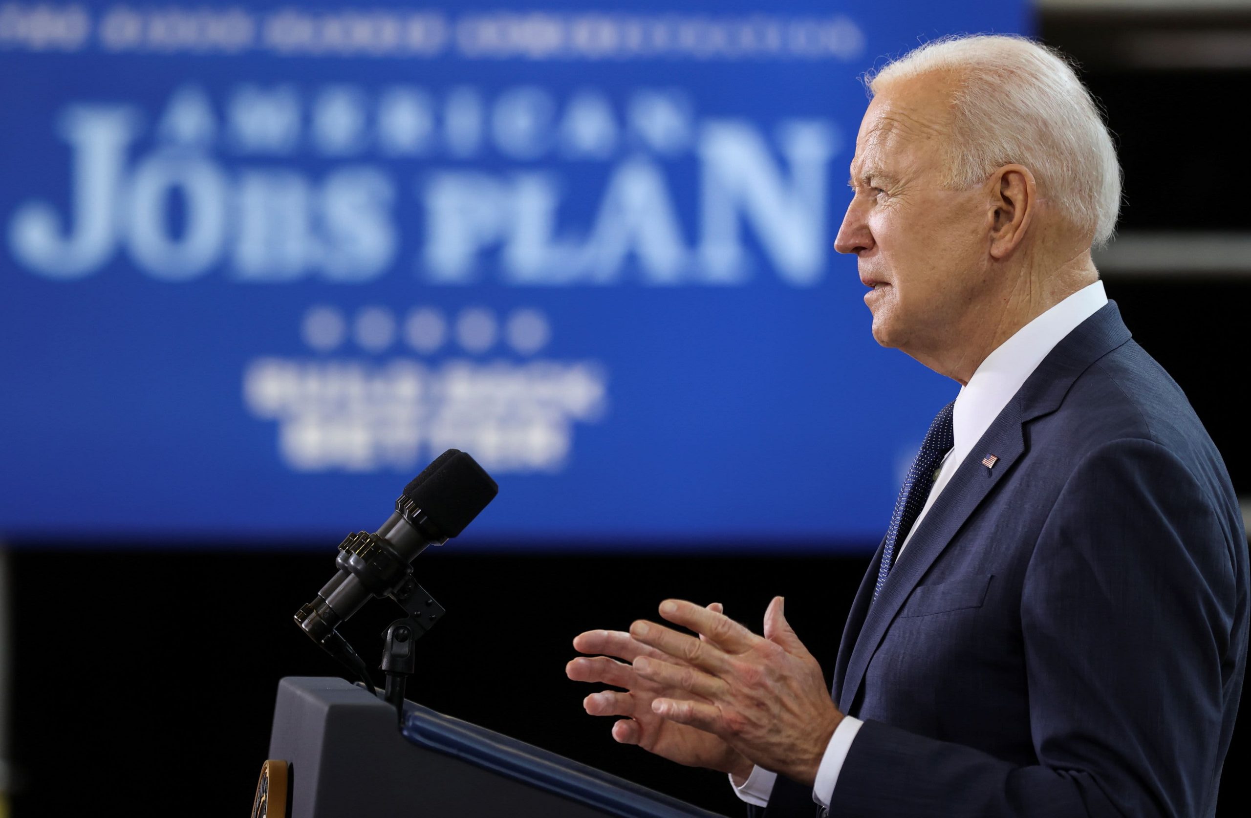 U.S. President Joe Biden speaks about his $ 2 trillion infrastructure plan during an event at Carpenters Pittsburgh Training Center in Pittsburgh, Pennsylvania on March 31, 2021.