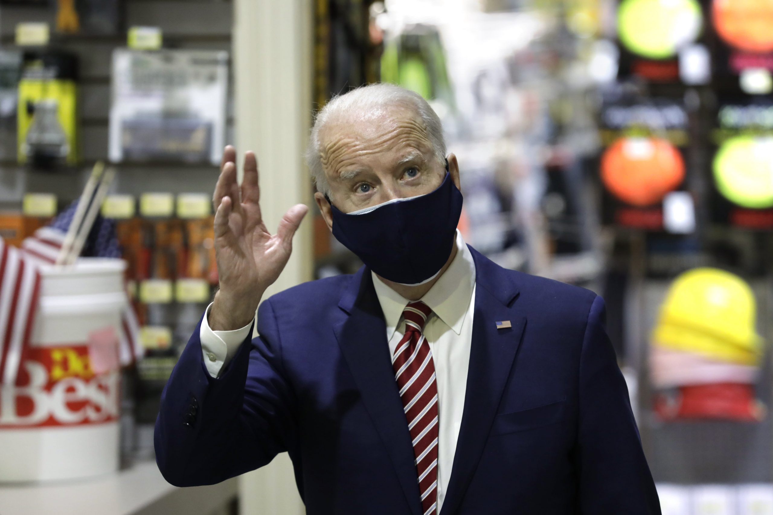 President Joe Biden greets workers during a visit to WS Jenks & Son hardware store in Washington, DC, the United States, on Tuesday, March 9, 2021.