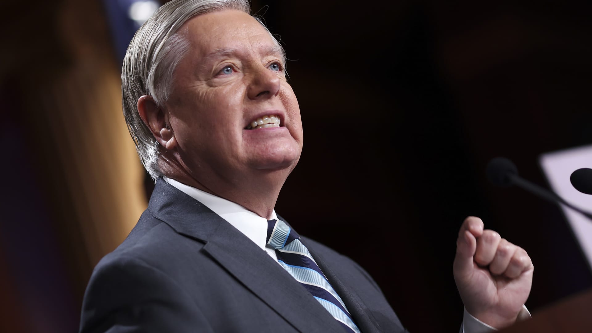US Senator Lindsey Graham speaks at a press conference at the US Capitol on August 05, 2022 in Washington, DC.