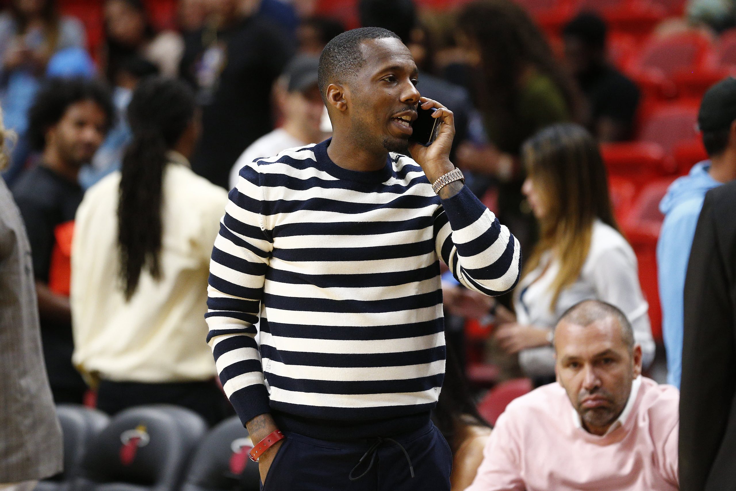 Sports agent Rich Paul oversees the game between the Miami Heat and the Charlotte Hornets at American Airlines Arena on March 11, 2020 in Miami, Florida.