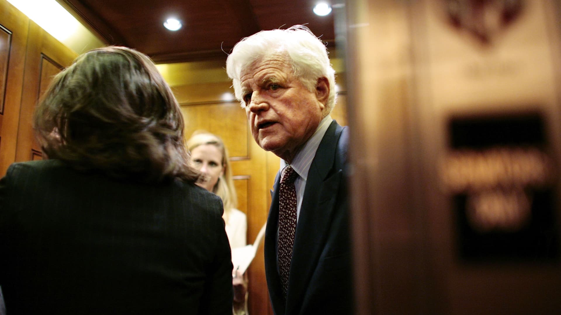 Senator Ted Kennedy (D-MA) enters an elevator after leaving the floor of the US Senate following a roll-call vote to nominate Justice Samuel Alito to the US Supreme Court January 72-25, 2006 in Washington had , DC.